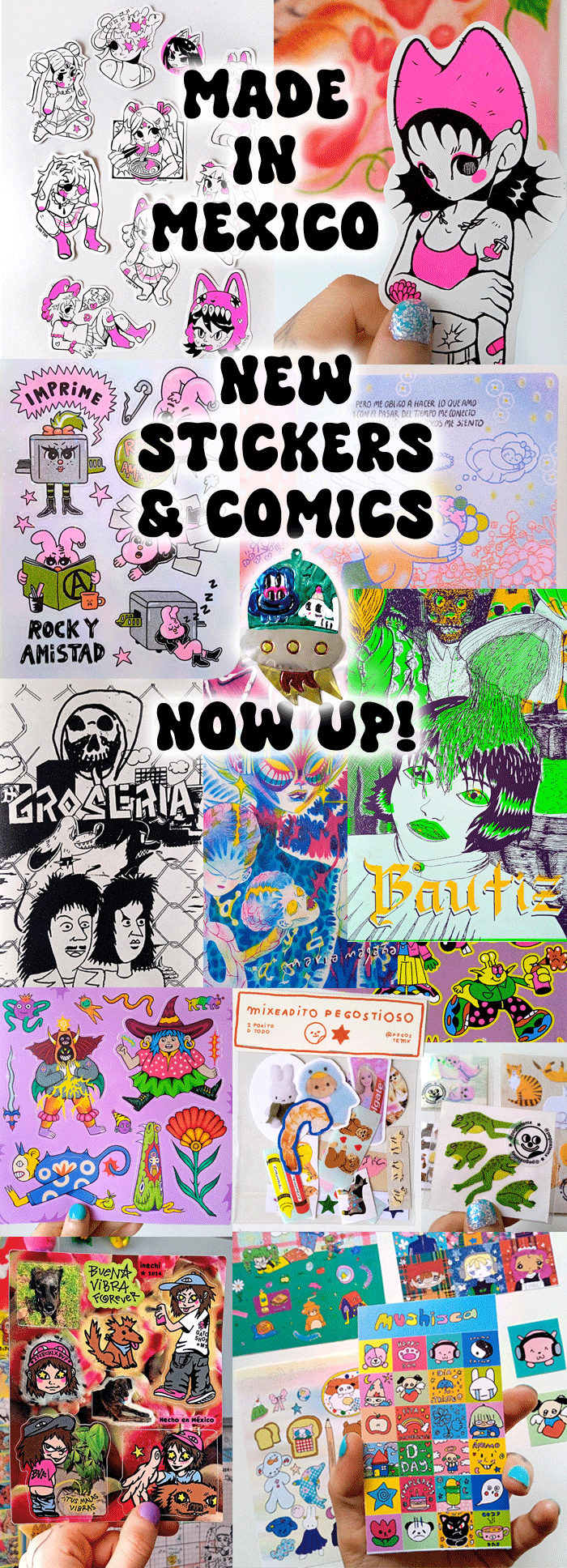 How did the year start off for you? It's been upsetting to watch all these dark things happening and continue to happen, so I've been focusing on my own things to productively distract myself from all that, also because it makes me feel like there isn't much I can do to change or stop it anyway. Remember that taking care of yourself is the first thing you must do so you can take care of others. I also feel like being active in connecting and supporting your own local community is the best thing we can do right now,... I'm happy to present you with new offerings from Mexican artists (that I just put up today!), I've been moving forward with my plan to invite artists to design stickers for the shop (more on this coming soon) and also, it's been a pleasure for me to work with Rox, who has been my assistant now for 6 months, with whom I'm cooking up some customized bags that we're hoping to have ready for you for March...
