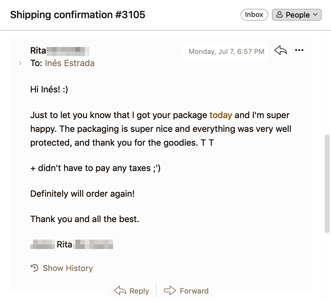 If you have any problems with your order, contact me(Inés)! I will do my best to help you 🙂 Issues will be dealt on a case by case basis (read our info page for more details) but if the fault was ours, I will take full responsibility 🙏 We're only human and sometimes we make mistakes (´ω`)~♪ Thank you for your support!