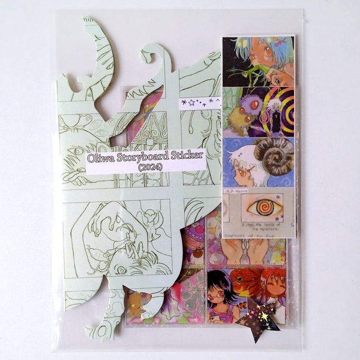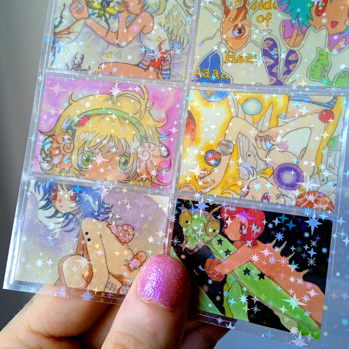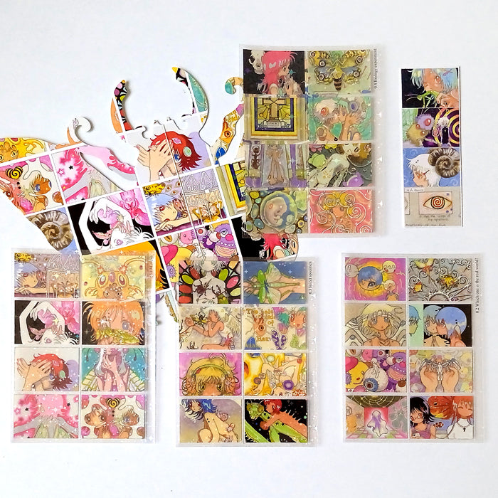 Set with 4 holographic sticker sheets, a bookmark and a mini print by Chinese artist Oliwa