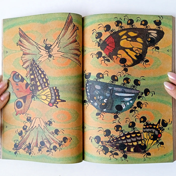 A collection of illustrations featuring anthropomorphic insects, taken from various vintage publications from Japan, mixed in with some collages made by Samplerman. This material was selected by 50 Watts from their own archive.