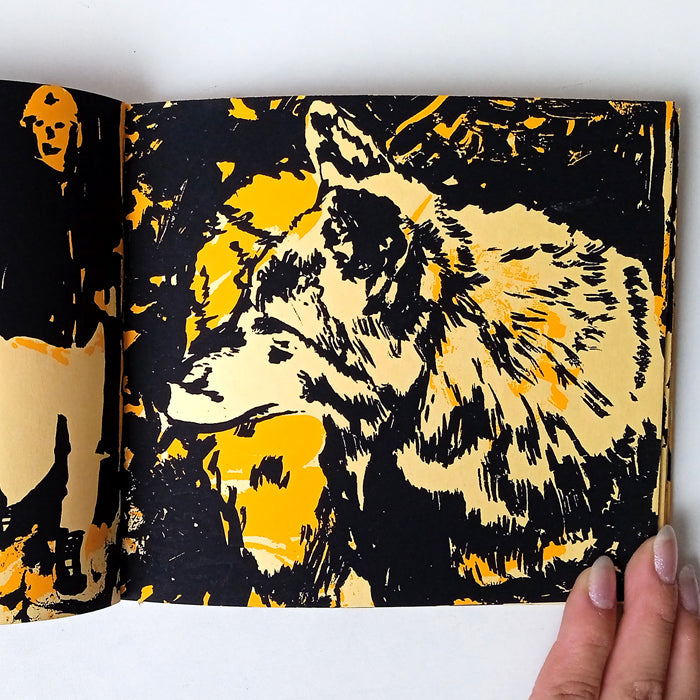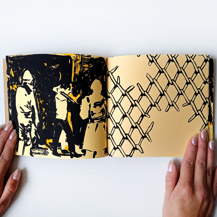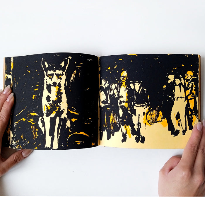 Illustrations by Nando referenced from photos of coyotes and protests, drawing parallels between the reactions of both animals and humans when oppressed.