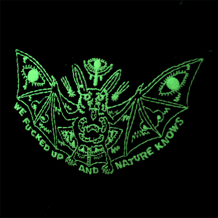Bat patch embroidered with white thread that glows in the dark!