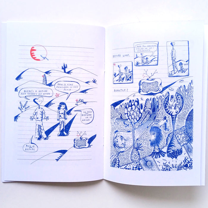 "Before After is an avant garde sci-fi tale about space, time, bodily function and alienation. Oshima’s organic shapes, ballpoint lines and evocative patterns drag the reader through while raising questions of purpose, femininity and perspective. It’s an otherworldly transmission from an emerging talent of experimental comics." –Comics Blogger