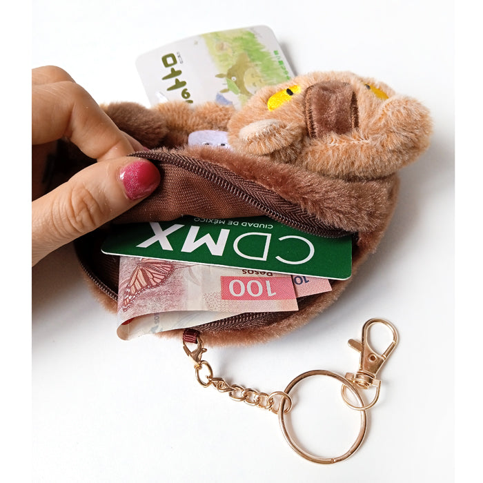 Super soft and keychain pouch! Fits cards, bills, coins and other small trinkets.