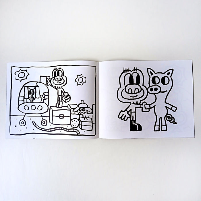A colouring book by Tim Comix, featuring his characters contemplating the global ecological crisis we're currently living through while at the same time being able to find love and joy in the midst of it all