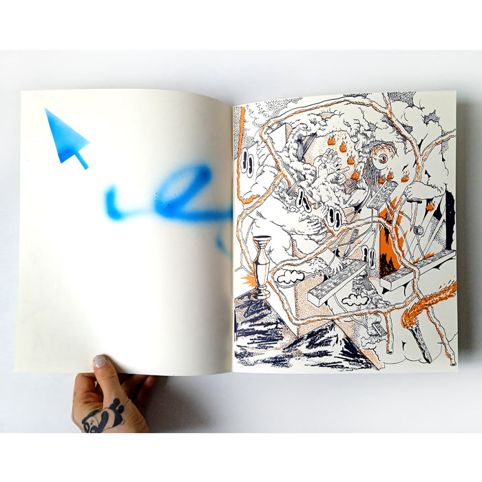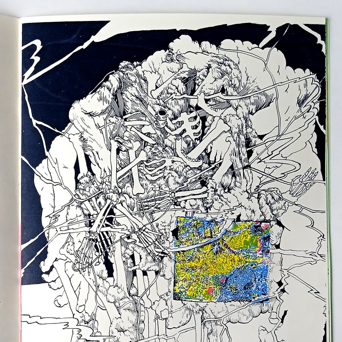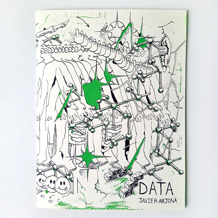 A trip through a dimension in which the virtual and the organic clash together in a glitch. Illustrated and hand screen printed by Mexican artist Javier Arjona from Rabia