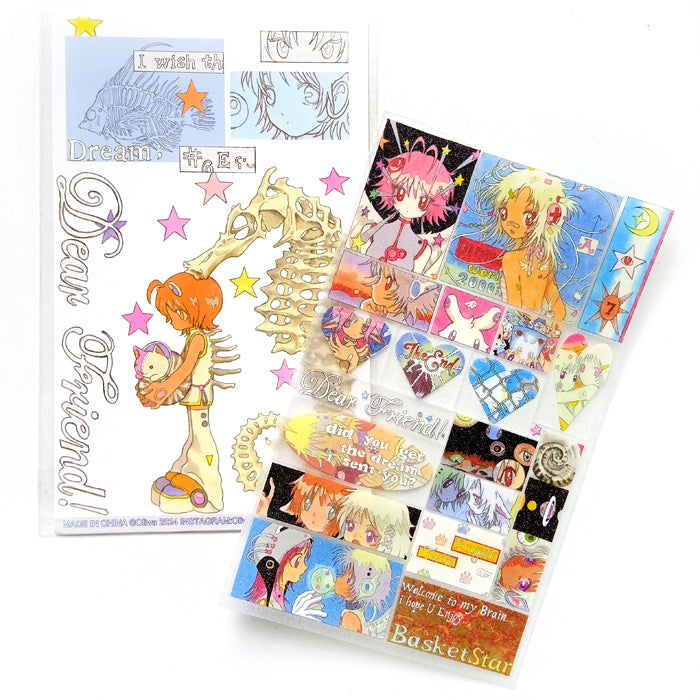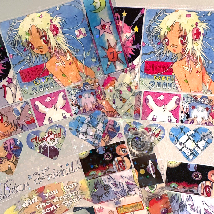 1 sticker sheet. Includes a mini print that can be used as a postcard or for decoration! The stickers come in 2 different finishes: frosted and holographic stars... We'll send you a surprise one ☆