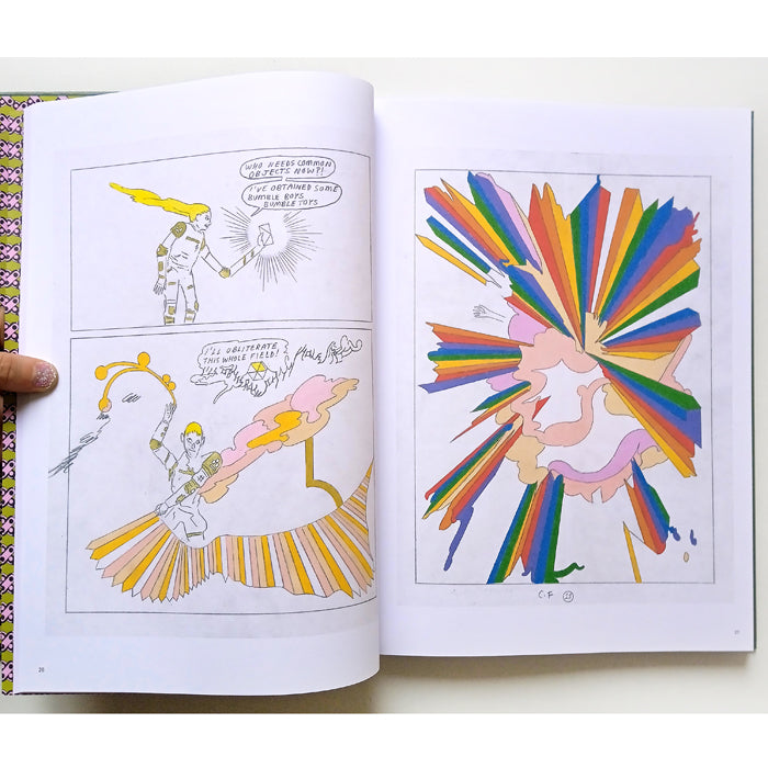 Pulling from pulp, sci-fi, gag cartoons, fantasy, and thrillers, and populated by goblins, astronauts, magical thieves, and talking owls, CF’s comics break apart genres and forms, then reassemble them into one-of-a-kind stories that reveal an immense imagination and boundary-pushing talent.