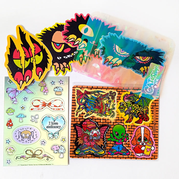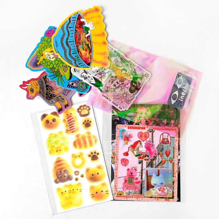 Lucky bags with our stickers! If you order anything else besides this (or you've ordered from us before), I'll try my best to match your vibe and send you designs I think you would like : 3 ...and no repeats!