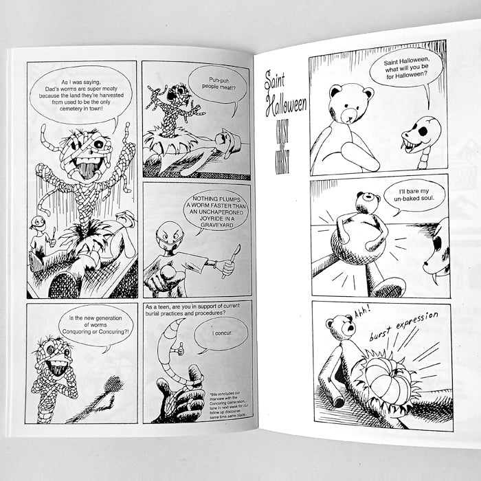 A collection of short horror comics by Noel Freibert, one of my favourite cartoonists from the USA working today! With a unique style that blends manga influences with underground graphics reminiscent of rave & punk flyers, Noel manages to get your skin crawling with these twisted stories... He's also a certified sweetheart of a person, so it's actually a total mind-fuck that he's the author of these fucked up comics!