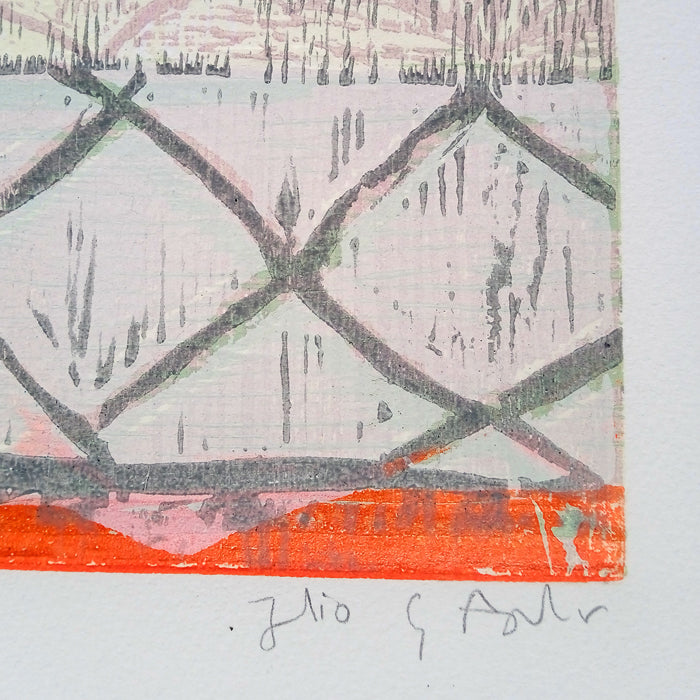 Untitled woodcut limited edition prints by Oaxaca artist Julio Garcia Aguilar, depicting a figure illuminated by a phone under the blankets. These are artist proofs with variations in the image composition. Hand made at Epigono E.G.L in Mexico City.