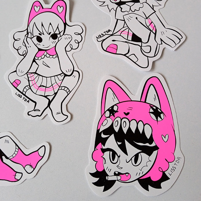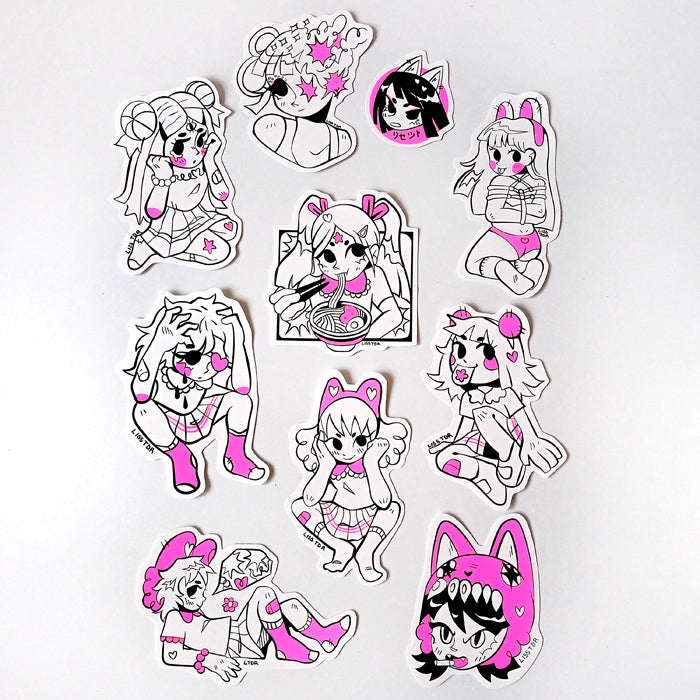 Set of 9 hand screen printed vinyl stickers made by Mexico City street artist LISSTDR