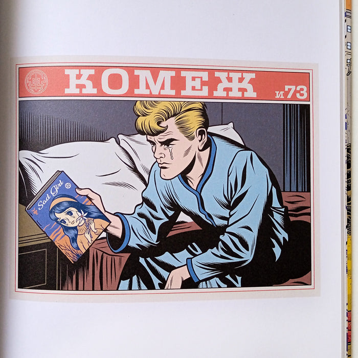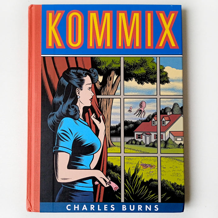 "From the beguiling imagination of Charles Burns: 80 comic books that never were... The covers ― some with otherworldly titles in alien letterforms, and others that riff on classic genres (Throbbing Hearts, Unwholesome Love) and eras (Drug Buddy, Huss) ― each inspire a multitude of interpretations, build entire worlds, and suggest entire narratives that lie within their non-existent guts. This is Burns at his most playful, imaginative, and suggestive, using the format of the comic book to continue to explore many of the themes that run through all his longer-form work ― adolescence, metamorphosis, nightmares, and sexuality ― and provide a pretext for the creation of some of the most mysterious and bewitching imagery of Burns’s incredible career. Kommix is like discovering an entire box of comic books you never knew existed." –Fantagraphics