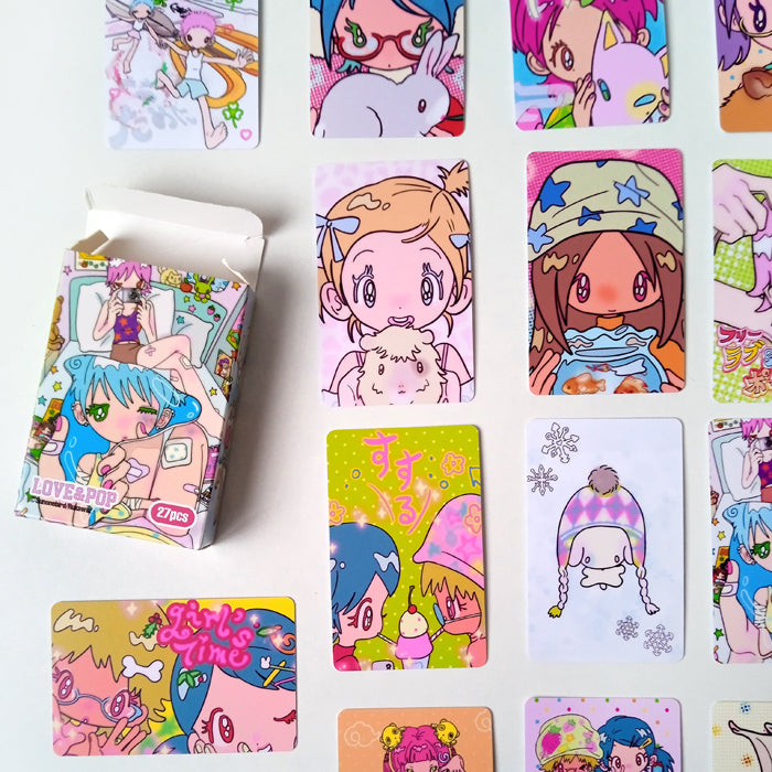 Set of 27 cards featuring illustrations by Oliwa. Printed on both sides (full colour on the front & line art on the back) and packaged inside a cute box. Display them on your wall, your photocard or sticker album or gift them to your penpals!