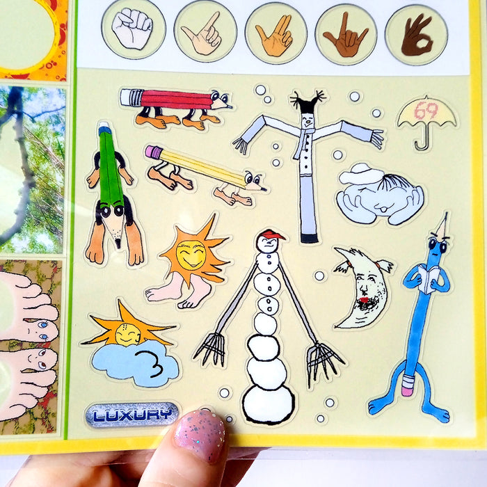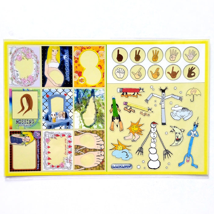 1 clear sticker sheet with frames, characters and hand signs to decorate your pictures : 3