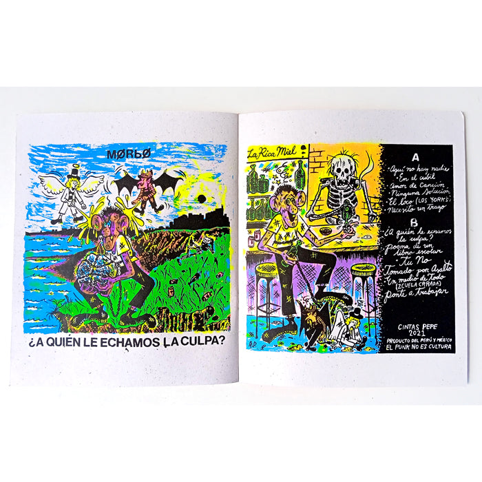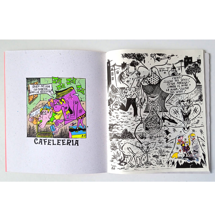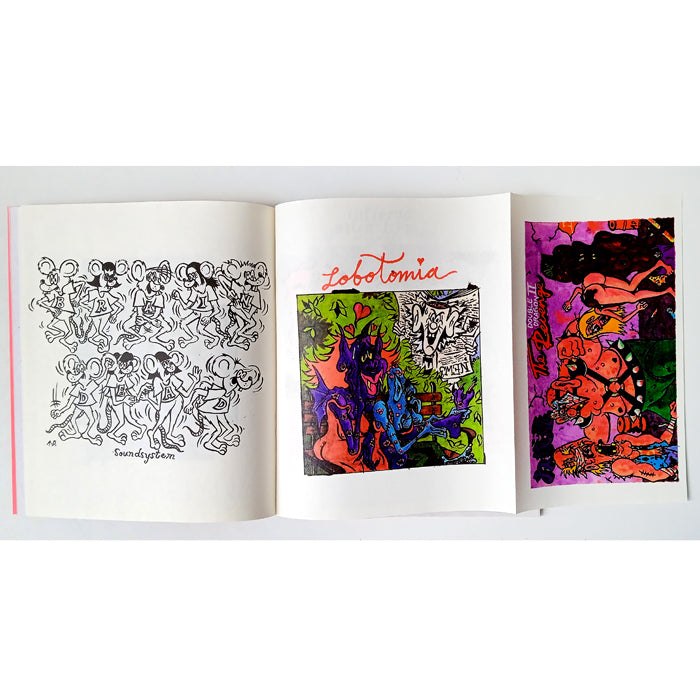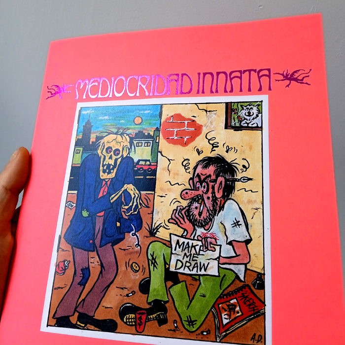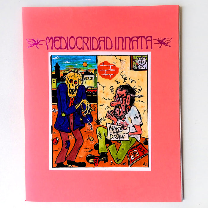 Mediocridad Innata is Abraham Diaz’ self-published series, collecting his ‘commercial work’. Some of the “clients” for this issue include LA-based Brain Dead everything brand, a Mexico City based meat market, and Diaz’ own Lobotomia brand. Mixed printing processes and papers, including images rendered in Xerox, 4-color screenprint, offset, and letterpress! Edition of 220 numbered copies.