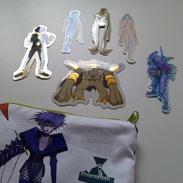 Unique pencil bag made by us in Mexico City with a et of 6 vinyl stickers designed by Jesús Benítez