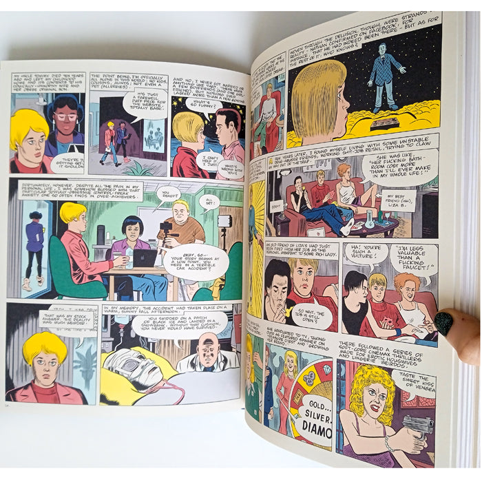 "Monica is a series of interconnected narratives that collectively tell the life story ― actually, stories ― of its title character. Clowes calls upon a lifetime of inspiration to create the most complex and personal graphic novel of his distinguished career. Rich with visual detail, an impeccable ear for language and dialogue, and thrilling twists, Monica is a multilayered masterpiece in comics form that alludes to many of the genres that have defined the medium ― war, romance, horror, crime, the supernatural, etc. ― but in a mysterious, uncategorizable, and quintessentially Clowesian way that rewards multiple readings. Five years in the making, Monica marks the apex of creativity from one of the defining voices of the graphic novel boom over the past quarter-century." –Fantagraphics