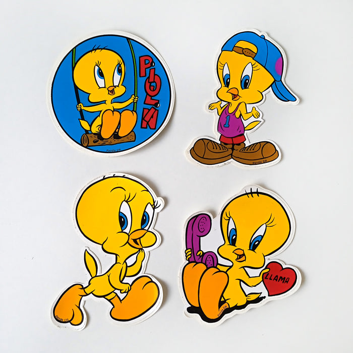 Set of 4 vintage stickers. Screen printed here in the 90s with original Piolín (Tweety) designs straight out of bootleg paradise