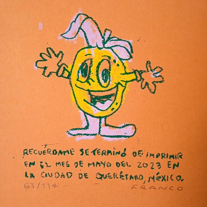 "Recuérdame [Remember me] is the slogan used by Marinela's snack cake Gansito. As of April 1st, 2021, cartoon characters were removed by law from food packaging in order to reduce childhood obesity. On this publication, Franco used crayons to draw all the familiar characters of his childhood and so many other kids in Mexico" –Concordia