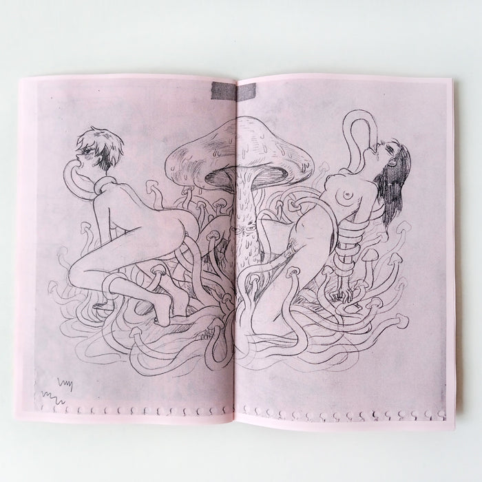 As if the previous issue wasn’t enough depravity, we kept digging in the depths of Valis’ archive of unpublished drawings and found more material that deserves to be seen. In this issue a juicy 14 page comic plus various illustrations and sketches featuring sex with mushrooms, aliens, airplanes, and more... only for true lovers of the perverse ; )