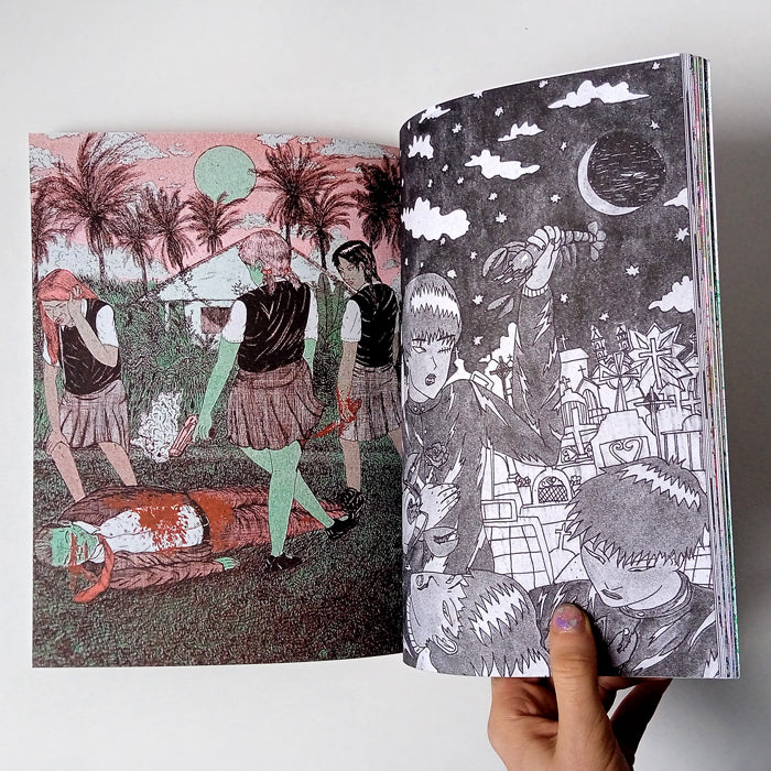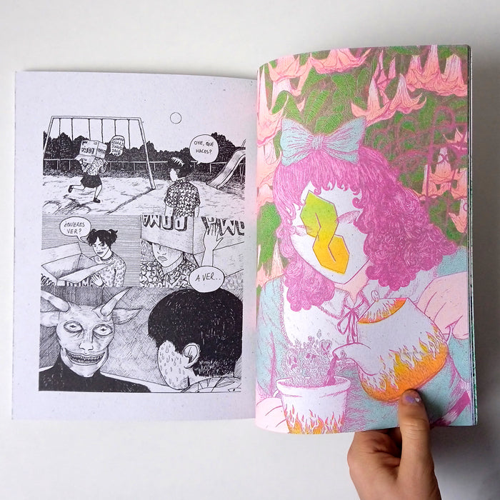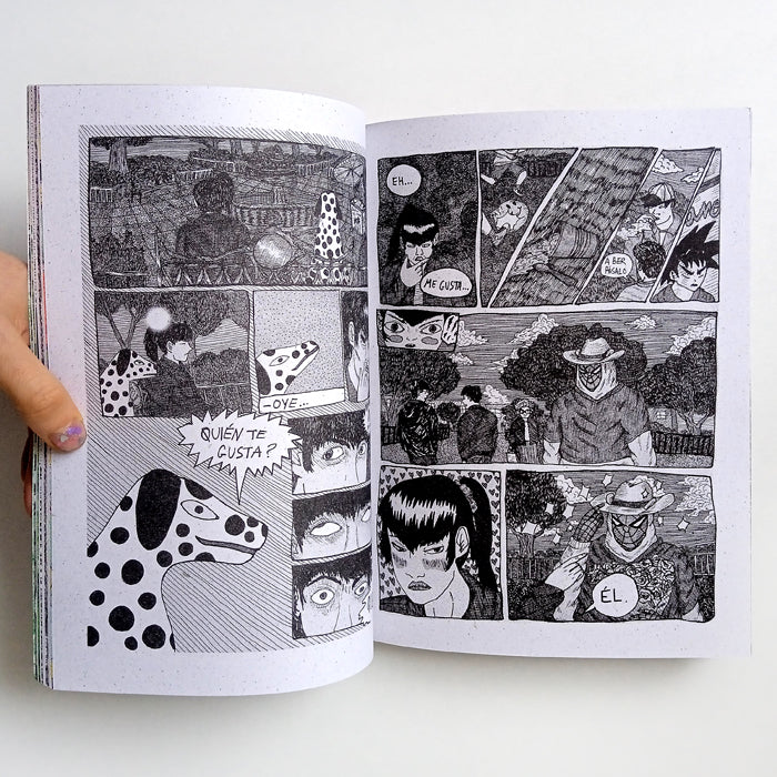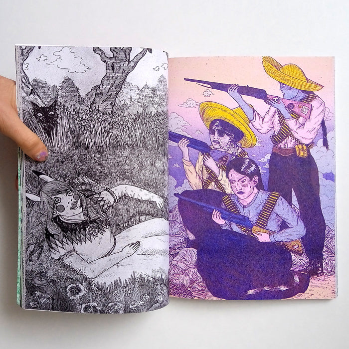 Cumi D. Tamayo is an artist from Mexico City that creates illustrations and comics that reflect the tough side of being young in this monstrous city, in which aggression turns into a means of survival. The influence of anime and internet culture can also be felt, but Cumi owns it to make something unique. This book collects recent work as well as older pieces in a perfect bound edition