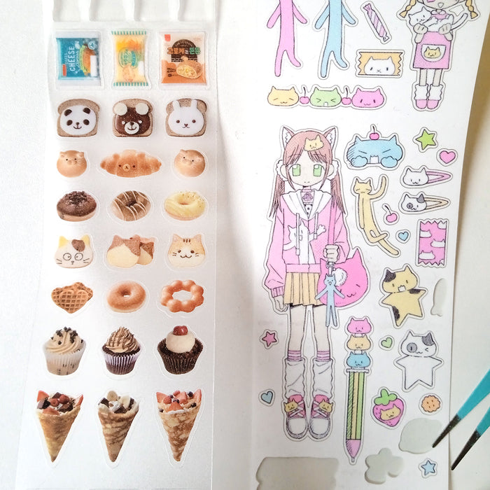 The sticker roll designs are a surprise but they're not random! Bear bags feature kawaii designs and come with one of each of these: