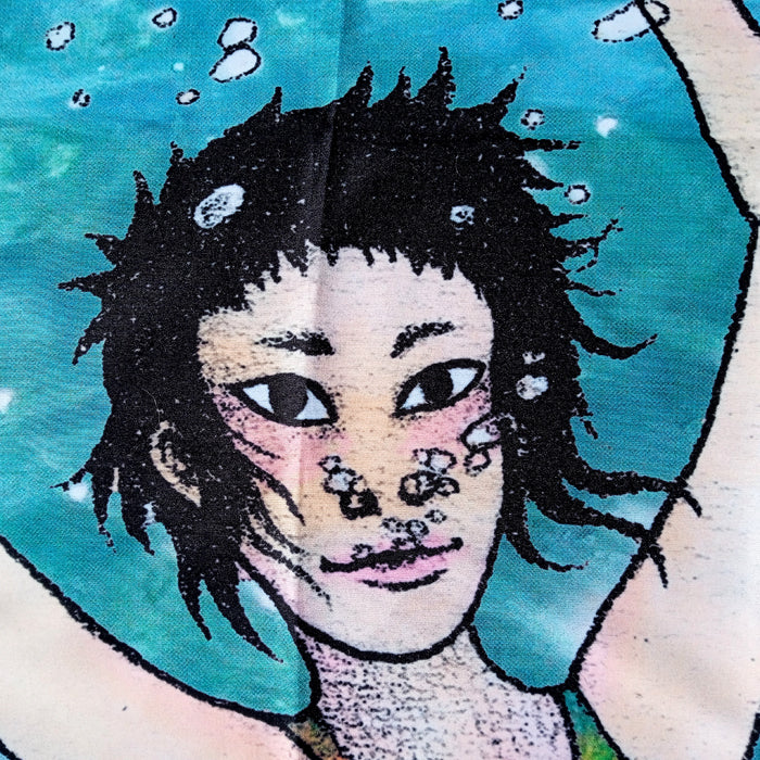 Tapestry for decoration, featuring an illustration from Inechi's Alienation comic. Made in Mexico and digitally printed on soft polyester fabric, similar to cotton