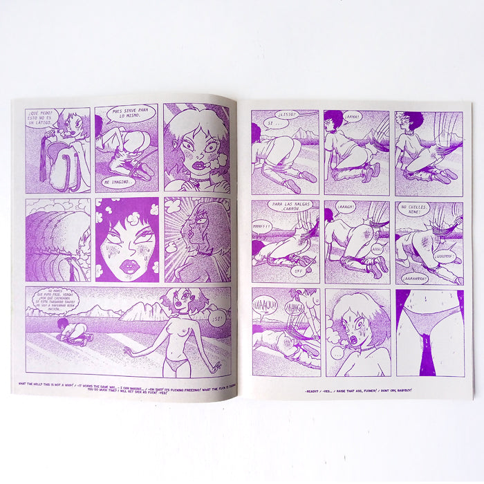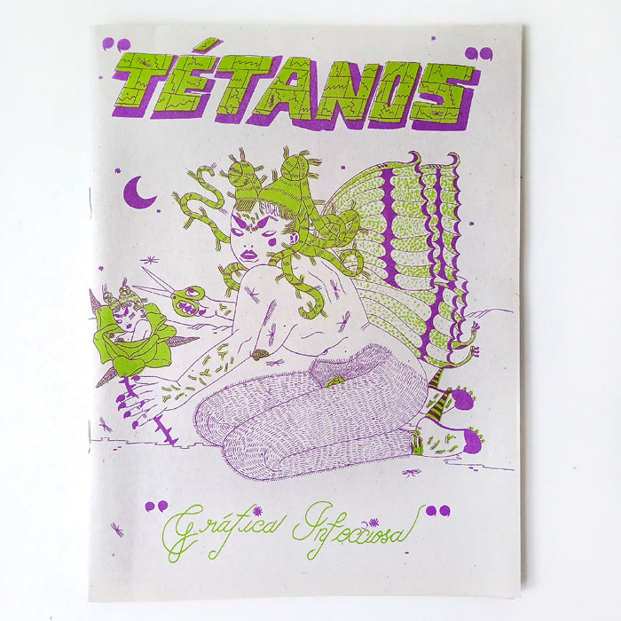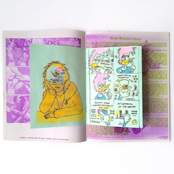 "A new issue of our beloved magazine is born after a long long time catching digital dust inside our computer's folders with the new goal of becoming a quarterly underground comics and graphics publication. This fourth issue is considered by Toribio (the editor in chief of the magazine) as the transition issue between the perverted sex themed zine Tétanos used to be to the more serious-all subjets-nerdy magazine he wants it to be in the future. This time, we have the honour to count with Drawings and Comics by artists as great as: Heather Benjamin on the cover, Jennifer Calandra, Brian Blomerth, Mou, Ivan Brun, Inés Estrada, Beau Richie, Craoman, Paul Arscott, HAZ, Andy Burkholder and Pakito Bolino on the back cover + a priceless interview with Heather Benjamin by Inés Estrada (Two of our favorite artists in the world! How lucky we are!) and let's don't forget Manchas y Ruido! The new section by Jose Haz (One of our favorite psychedelic artists and graphic nerds ever) where he shares us reviews and interesting articles on comic books and stuff he likes." –Joc Doc