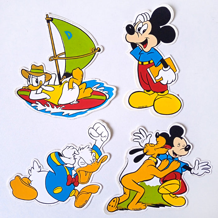 Set of 4 vintage stickers. Screen printed here in the 90s with unique cartoon designs straight out of bootleg paradise!