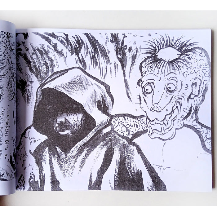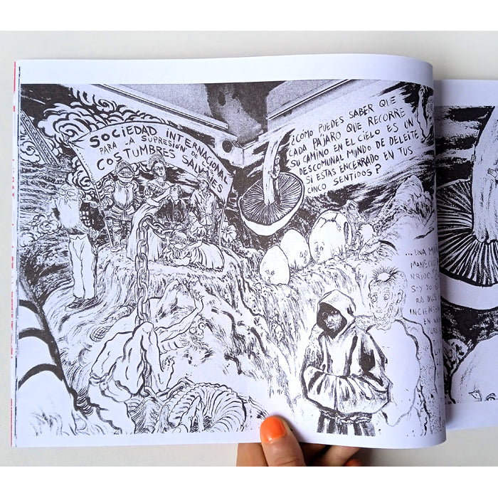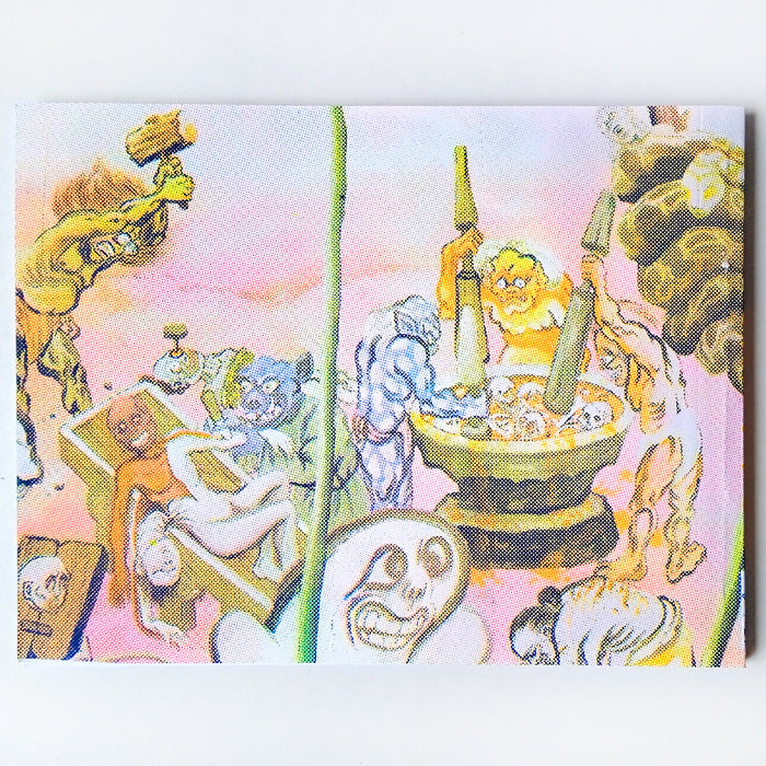 This publication is a companion Tsunami, a solo exhibition by the artist held in Morelia, Michoacán in spring of 2025. The drawings from this book are actually photographic details of the epic murals he painted for the show, through which he explores the themes of Buddhist hell, war, and his personal struggles with grief and the chaos of this world. Signed and numbered edition of 100.