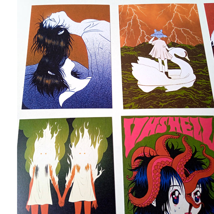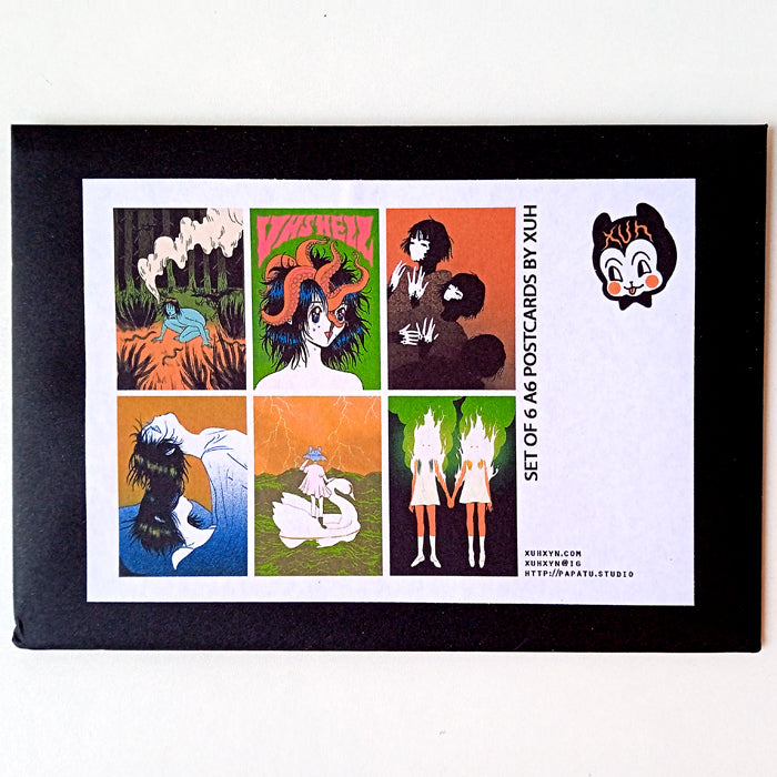 Set of 6 postcards by Xuh printed on matte cardstock with bright inks!